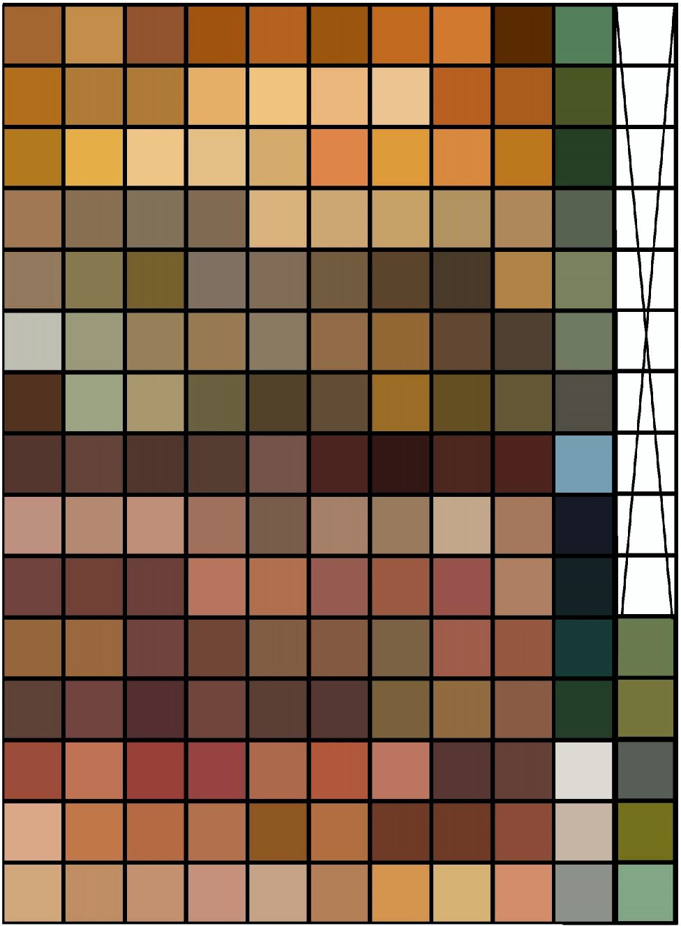 Muted colors — Refer to all colors that have low saturation (or chrome). These are subtle colors that are not bright or have been subdued, dulled, or grayed.