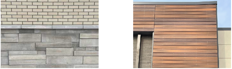 Materials outlined in 31-14(F)(4) covering at least 50 percent of the area when applied to the front building façade or 25 percent of the area when applied to a side or rear building façade.