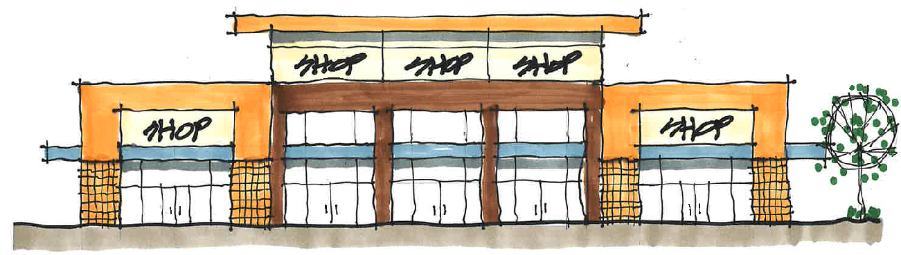 The front façade of a building, as well as the main entrance(s), shall be designed as focal points to the building. The main entrances shall incorporate devices such as canopies, overhangs, arcades, raised parapets over the door, larger door openings, display windows, accent colors, and other architectural details such as moldings. The remaining portions of the building shall be designed in a way that complements and is consistent with the building's street façade.