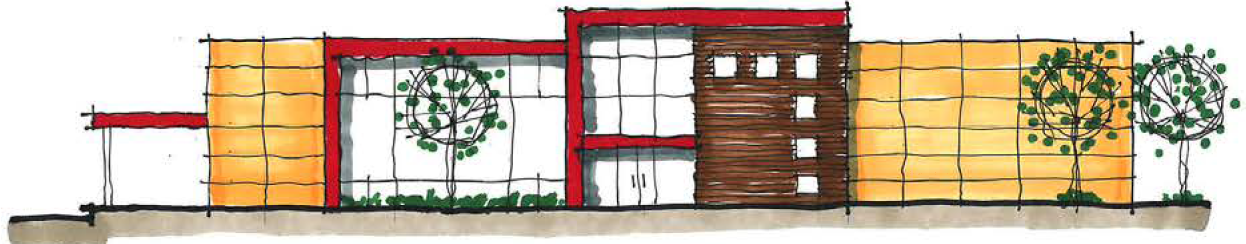 Landscaping islands or planting against the building, covering at least 30 percent of the length of the building façade.