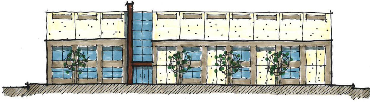 The front façade of a building, as well as the main entrance(s), shall be designed as focal points to the building. The main entrances shall incorporate devices such as canopies, overhangs, arcades, raised parapets over the door, larger door openings, display windows, accent colors, and other architectural details such as moldings. The remaining portions of the building shall be designed in a way that complements and is consistent with the building's street façade.