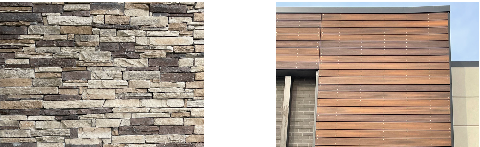 Materials outlined in 31-19(F)(4) covering at least 50 percent of the area when applied to the front building façade or 25 percent of the area when applied to a side or rear building façade.