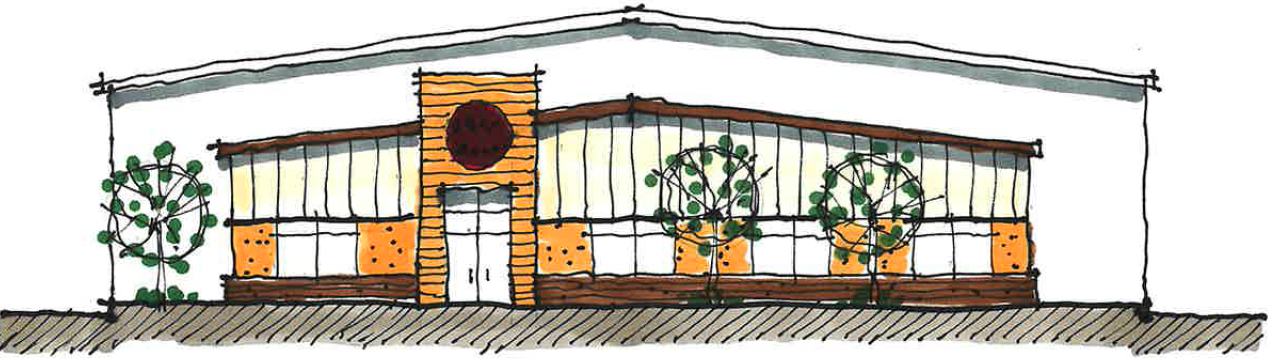 The front façade of a building, as well as the main entrance(s), shall be designed as focal points to the building. The main entrances shall incorporate devices such as canopies, overhangs, arcades, raised parapets over the door, larger door openings, display windows, accent colors, and other architectural details such as moldings.