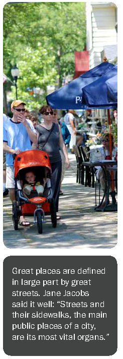 Pedestrian friendly Design qualities that make walking attractive, including places people want to go and good facilities on which to get there.