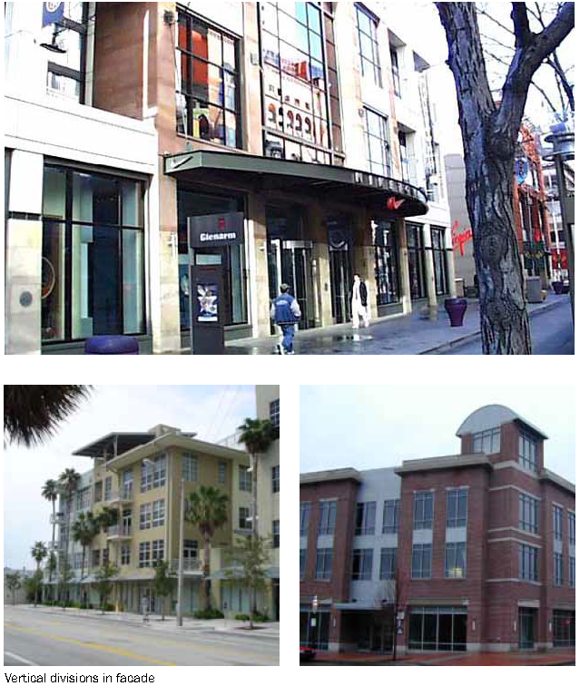 Building facades should be designed to provide human scale and detail and to avoid large areas of undifferentiated or blank facades.