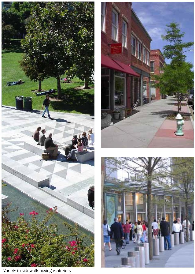 Sidewalks A walkway separated from the roadway with a curb, constructed of a durable, hard and smooth surface, designed for preferential or exclusive use by pedestrians.