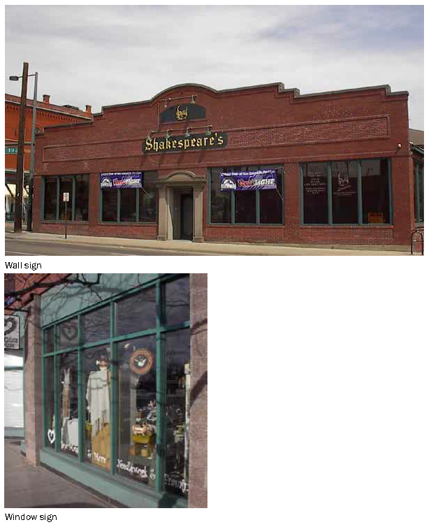 Window signs Typically silk screened, back-painted, metal-leafed, or sandblasted onto a glass window.