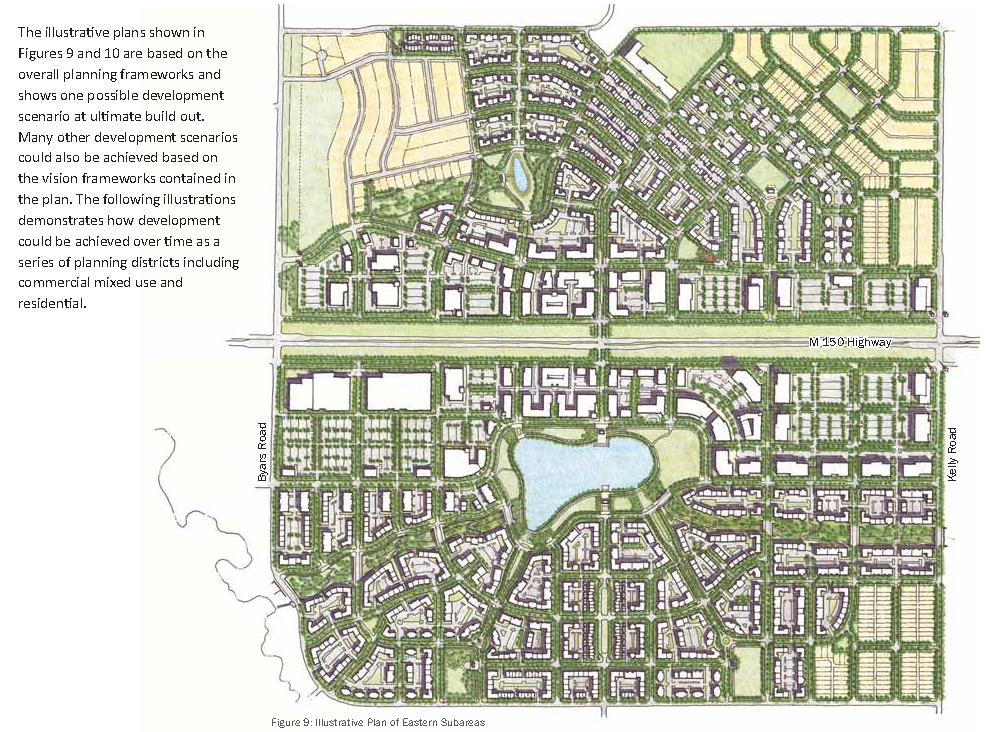 Framework Plan - This document establishes the overall scheme for development of the 150 Highway corridor, including the transportation and open space networks and land uses.