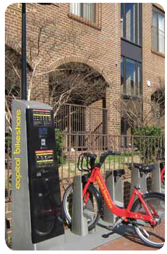 Green transportation practices are not limited to alternative modes. Designing streets and infrastructure through green methods means utilizing regional construction materials, recycled materials, elements with long-term durability and low-maintenance and energy-saving and/or renewable sources. The benefits are felt not only in health and the environment, but also in more cost-efficient maintenance and operations.