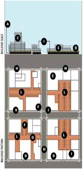 To create a more pedestrian-friendly environment within the study area, the plan proposes that certain sides of development parcels be designated "primary building orientation". These sides should have a 15-foot maximum setback from curb to building face. In addition, the primary orientation should include special façade and fenestration treatments and should be the primary building entry location. The map illustrates how the backage and local streets will become the front door for the businesses and residences that locate within the study area. (Figure 12)