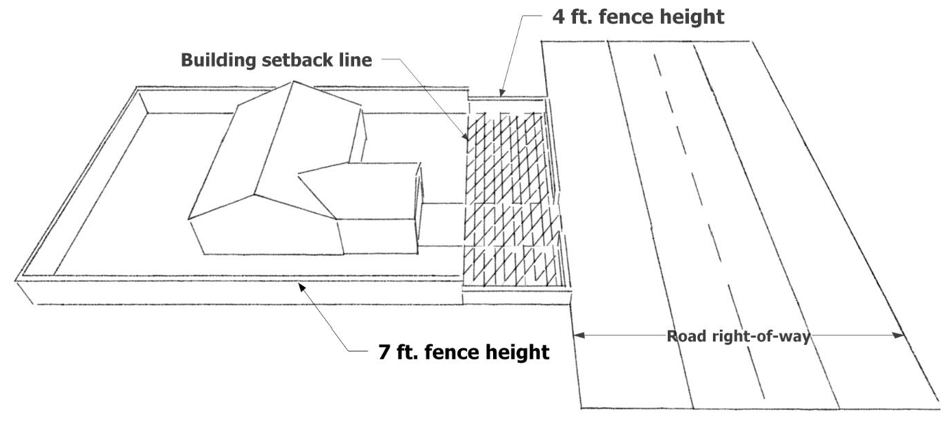 Front yard: Fences not exceeding four (4) feet in height are permitted within the front yard setback (see Figure 2).