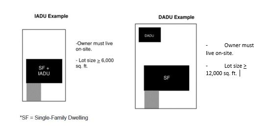 ACCESSORY DWELLING UNIT (ADU): A Detached Accessory Dwelling unit (DADU) or an Internal Accessory Dwelling Unit (IADU) both as defined herein.