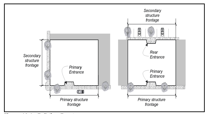"Front Yard." An area extending across the full width of the lot between the front lot line and the primary structure.