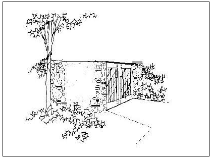 The screen shall consist of plant materials and a solid, decorative wall of masonry or similar durable material, six feet in height (up to eight feet may be allowed in compliance with Subsection B (height limits). Openings or pedestrian connections may be required at the discretion of the review authority.