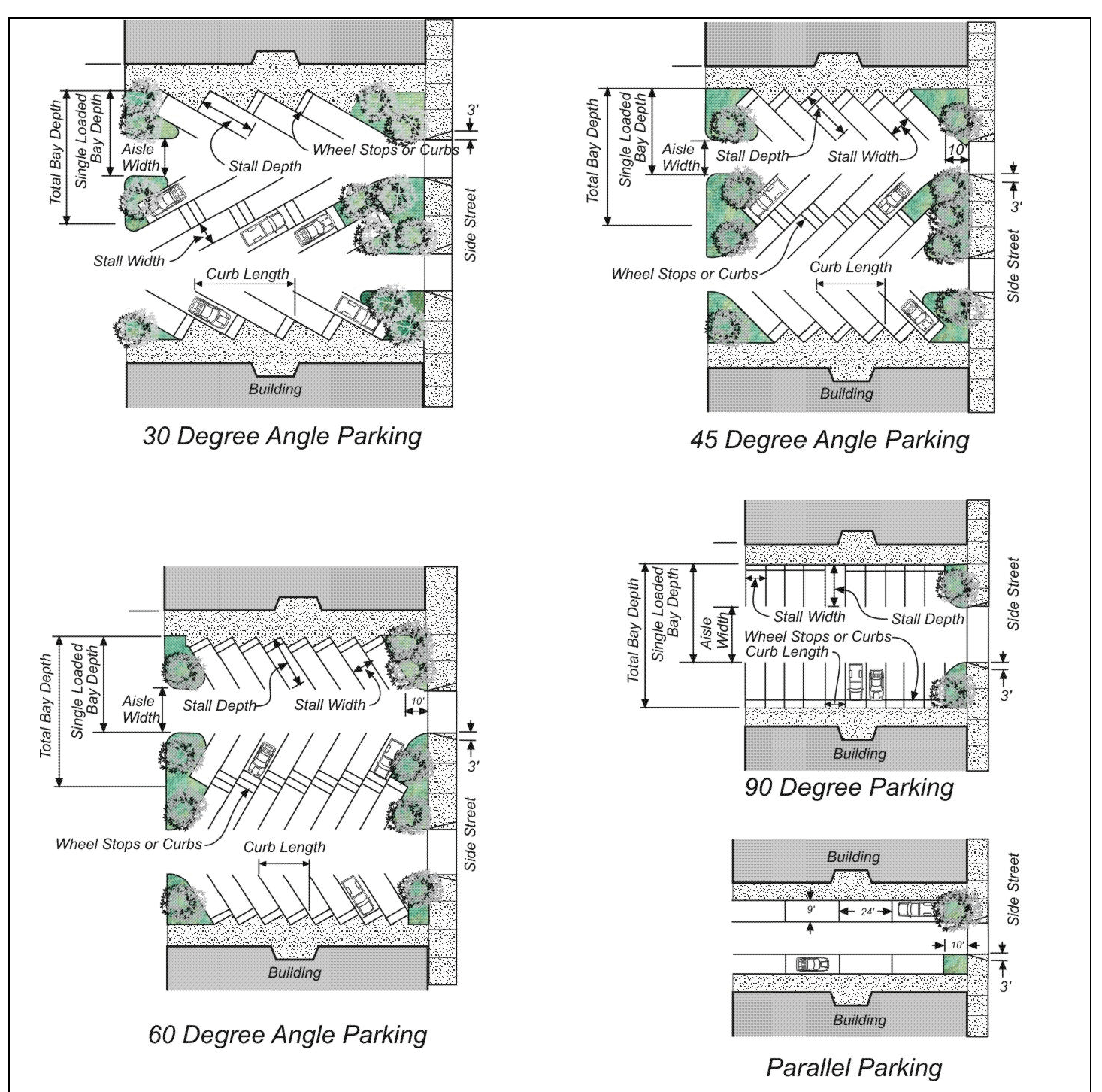 Side Setback. The side setback shall be measured at right angles from the nearest point on the side property line of the parcel to the nearest point of the wall of the structure; establishing a setback line parallel to the side property line, which extends between the front and rear setbacks. See Figure 3-1.