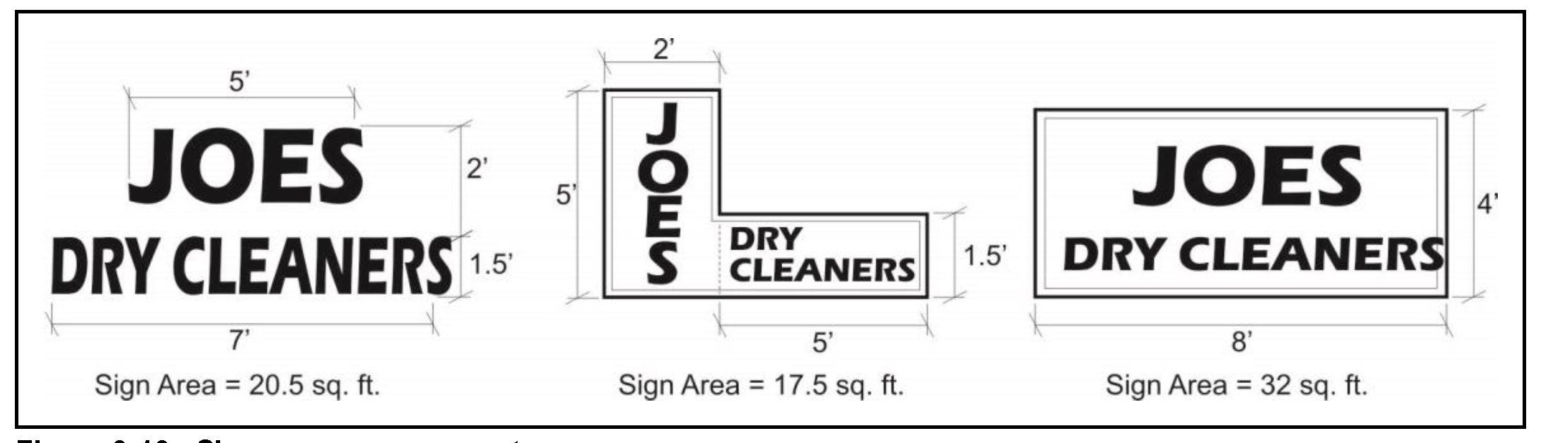 Oversized awning signs, building signs, freestanding signs, projecting signs, wall signs, and window signs that exceed the maximum sign area allowed by this chapter.