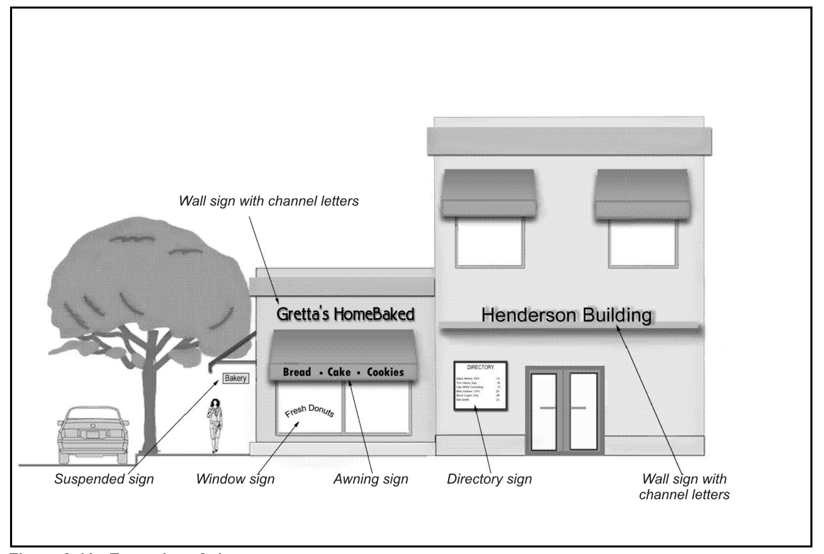 Wall Signs. The following standards apply to wall signs in all zones where allowed by Section 17.38.070 (zone sign standards), above. See Figure 3-21.