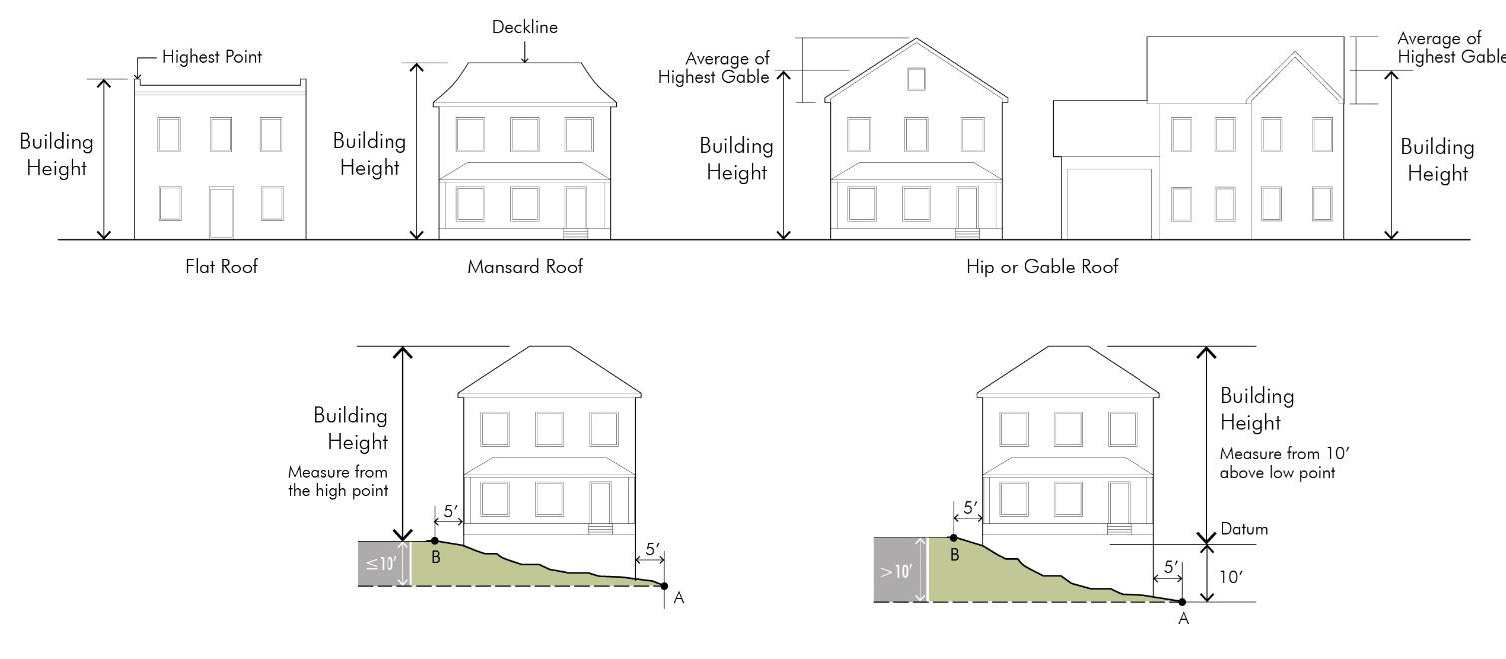 When there is greater than a ten-foot difference between the highest and lowest ground surface within a five-foot horizontal distance from the wall, use ten-feet higher than the lowest elevation in this area.