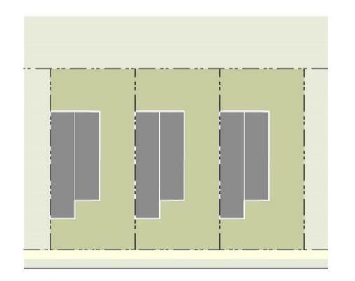 Horizontal articulation. Breaking the mass down through different levels of height on the building, particularly for taller buildings, or by a step back or other voids in the massing.