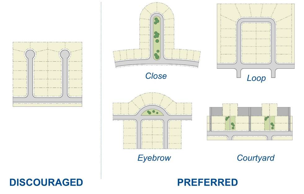 for culs-de-sac and maximize other options such as loops, closes, eyebrows and courtyard