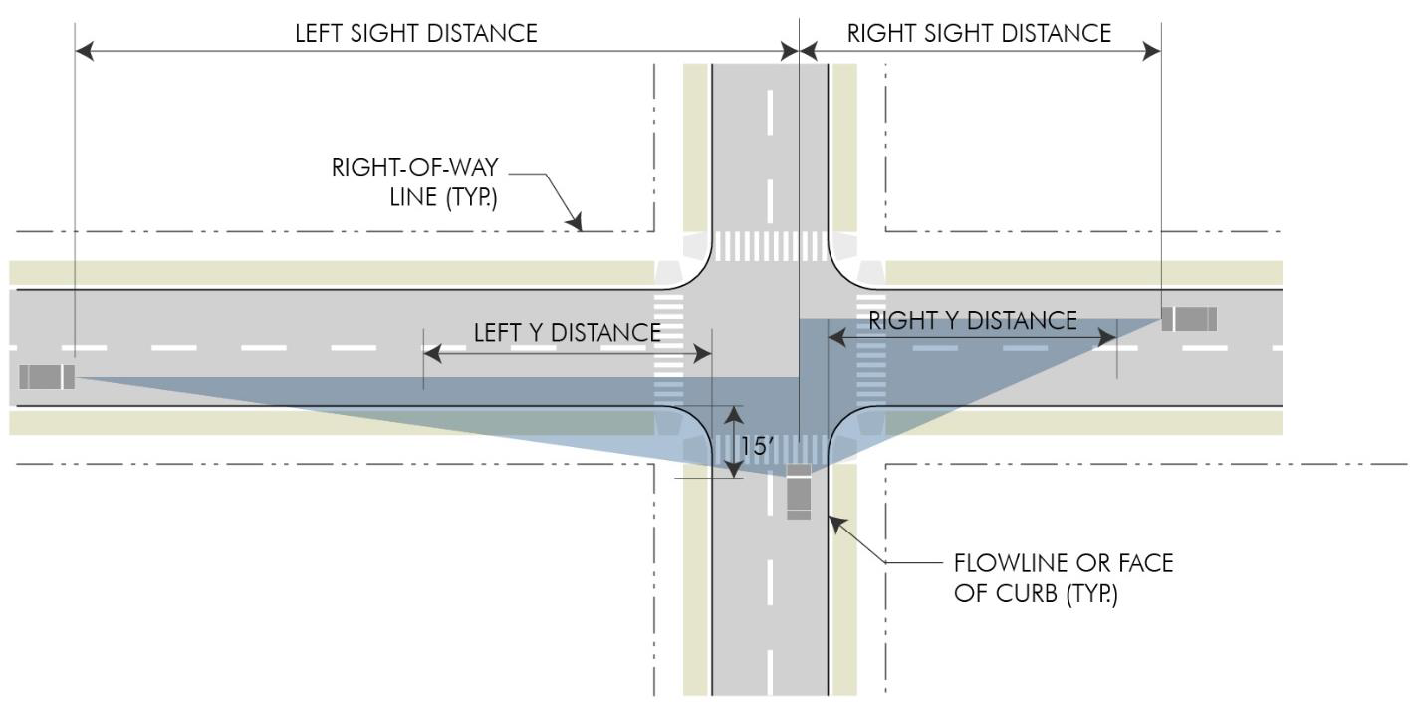 Fully controlled intersections where signalization establishes and prioritizes safe turning movements may deviate from the above sight triangle standards if site conditions warrant and based upon a recommendation of the director and public works director.