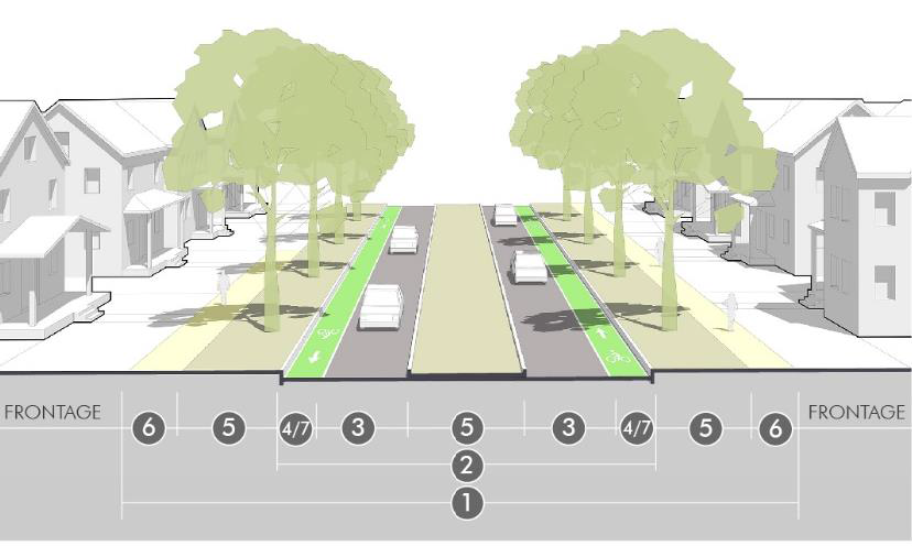 Context and type. The street designs are grouped with the following design types for application to specific contexts: