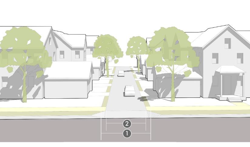 Neighborhood streets. A neighborhood-oriented residential street type, appropriate where a higher level of neighborhood design amenity and neighborhood walkability is desired. It is characterized by large street trees, wide sidewalks, slow speeds, and occasional on-street parking. Neighborhood streets require a well-connected network to disperse traffic and slow speeds, so that no single street is burdened with high volumes and speeds.