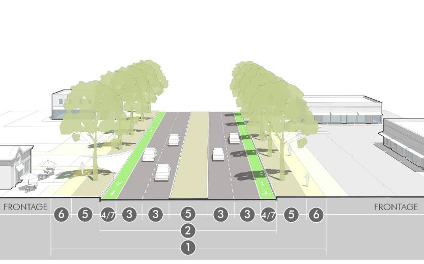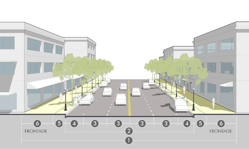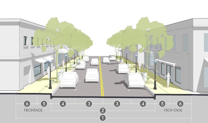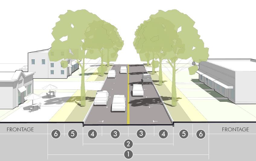 Turn lanes. Turn lanes for left or right turn movements may be required for specific intersections, based on an approved traffic study and with consideration by the director and public works director. Requirements for turn lanes should be based on careful consideration of the context balancing the impact of crossing distances for pedestrians, vehicle turning speeds, and prioritization of other planning, urban design, and traffic engineering issues. In general, this space should come from reconfiguration of the space within the roadway width near the intersection (i.e., within median space, narrowing lanes, or limiting on-street parking) rather than claiming space from the pedestrian area or streetscape, or rather than widening the road and right-of-way.