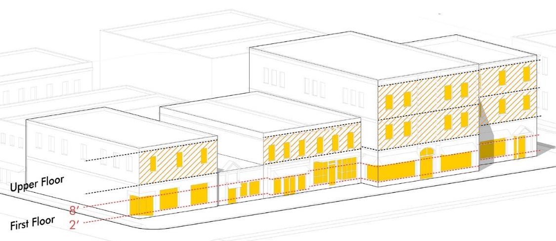 Transparency. Buildings shall have the percentage of openings specified in table 24-6-6, based on the following: