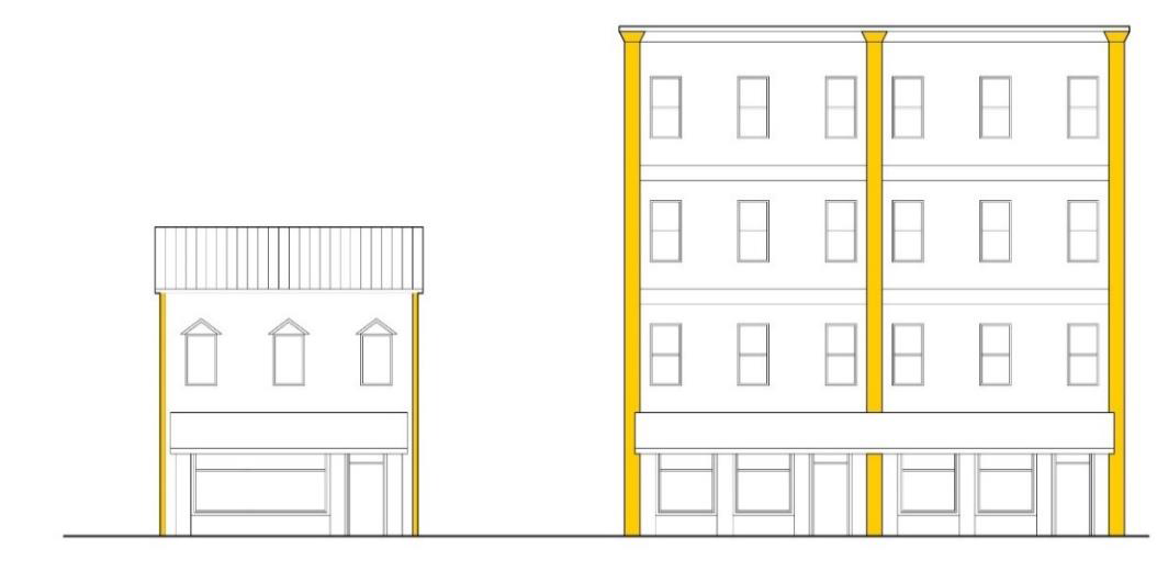 Refine the design, scale, and details of buildings based on the relationship to the public realm and make distinctions in design based on the context of development.