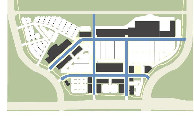 Shall be laid out to organize the site into smaller internal blocks between one and four acres.