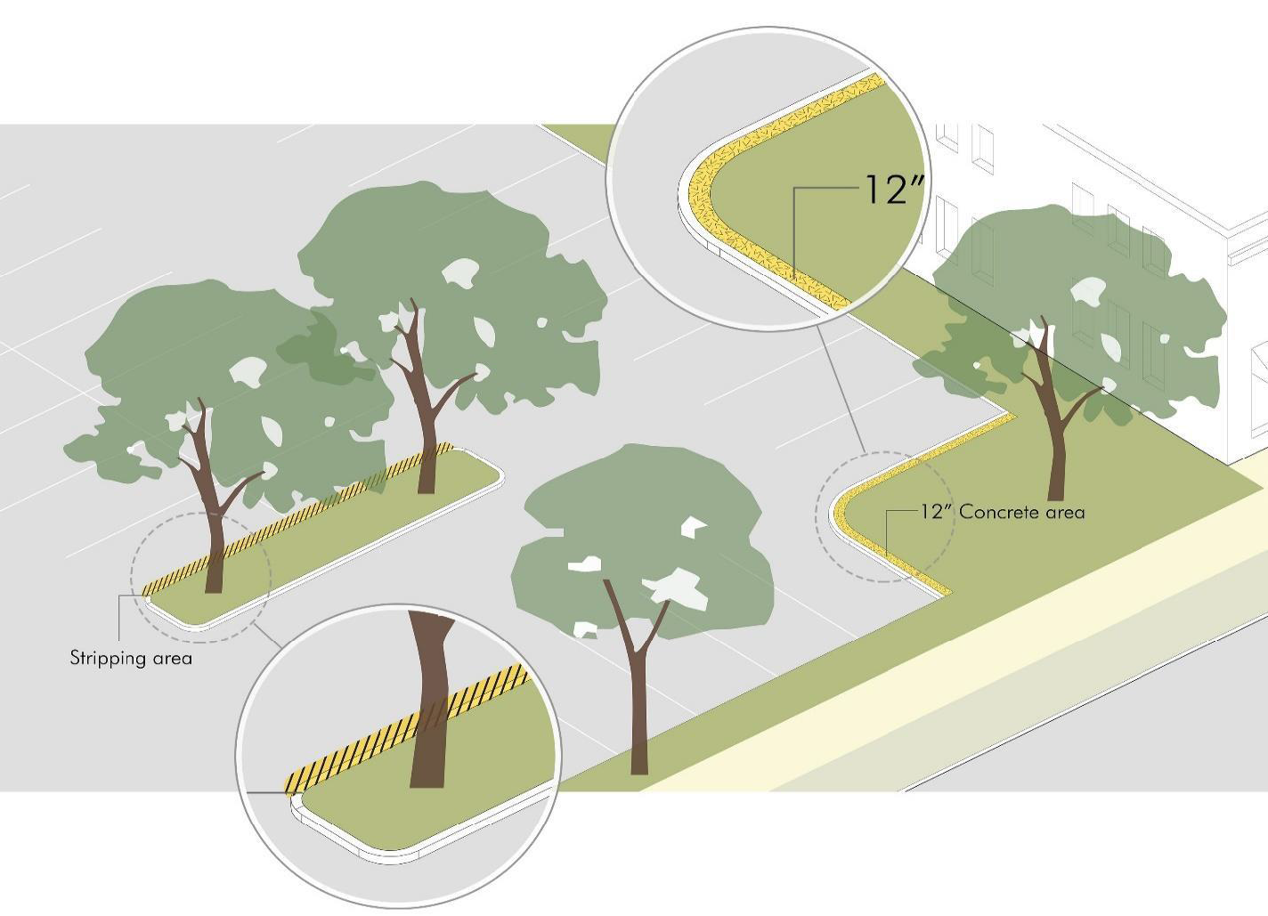 If the footstep is inside the landscape island, it must be concrete or an acceptable all-weather compacted material that does not float or drain into the stormwater sewer system.