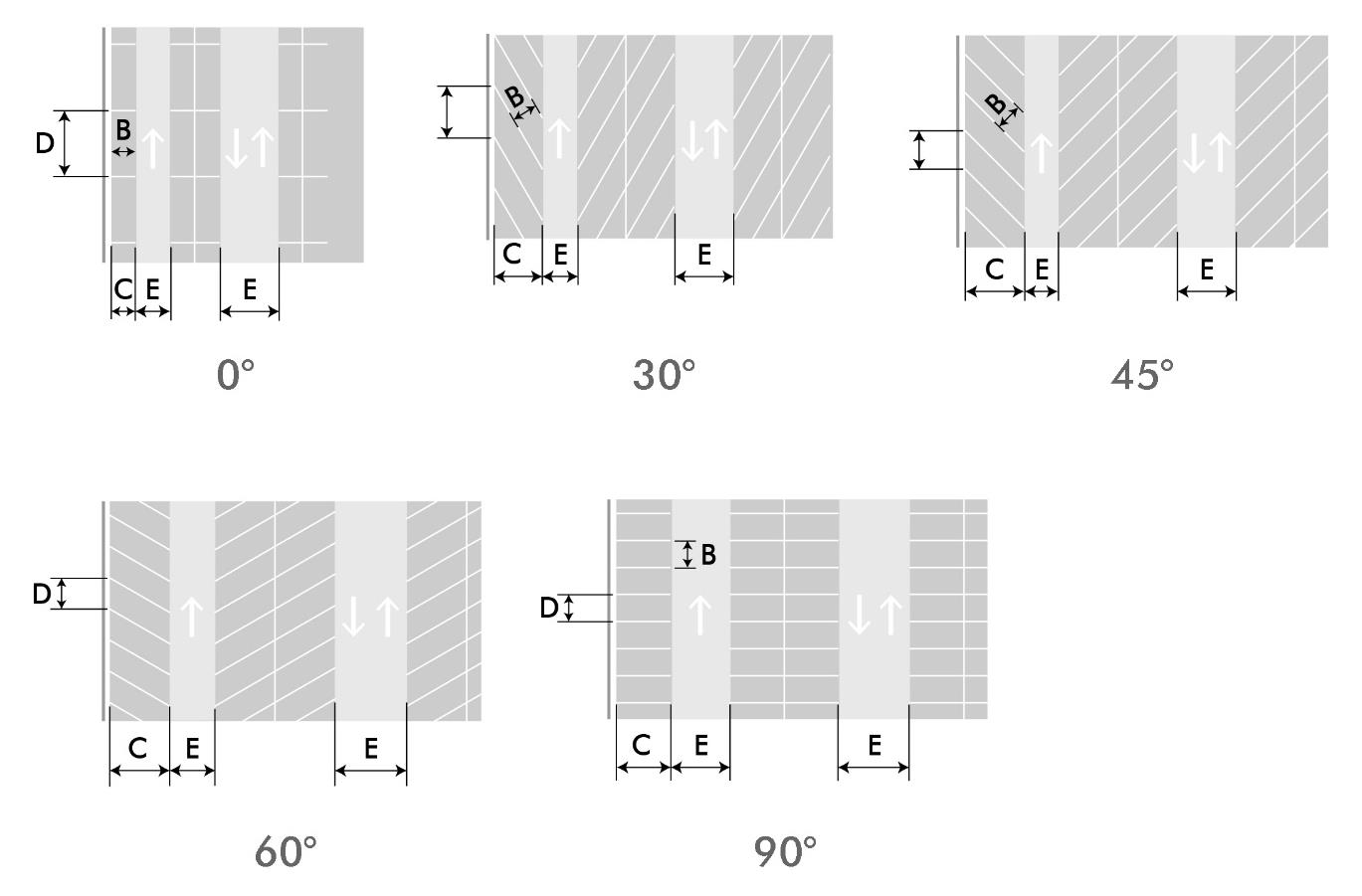 The footstep may be accomplished by a wider sidewalk, enlarged curb or striping on the parking surface in addition to the stall width and striping.