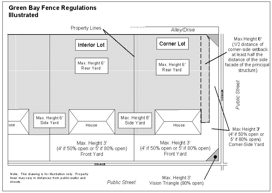 Fences shall not exceed three feet in height and shall be largely see-through, defined as no more than ten percent solid.