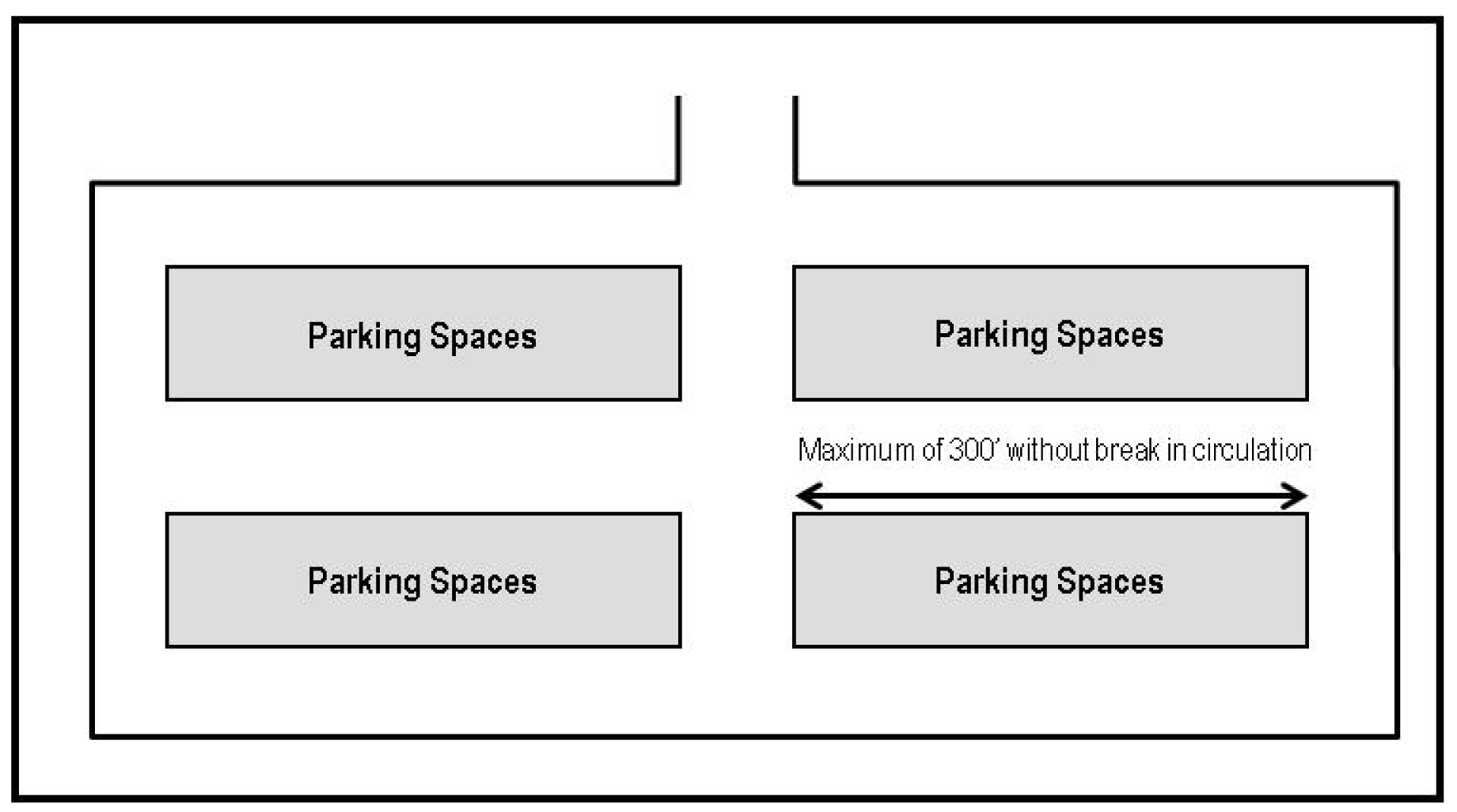 The maximum length of any parking aisle, without a break in circulation, shall be three hundred (300) feet. Should the city determine, based on the site design and circulation pattern, that an increased aisle length would not create a traffic or pedestrian hazard, said aisle length may extend beyond three hundred (300) feet as shown in Figure 16-1335(3).