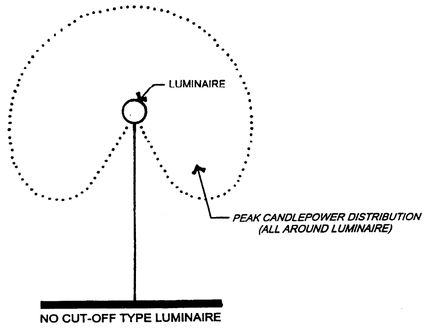 Requirements for the use of no cut-off type luminaires. When a light source or luminaire has no cut-off type luminaire (see Figure 21.06.0401(A)), the maximum permitted illumination and the maximum permitted luminaire height shall be as set forth in Table 21.06.0401(A).
