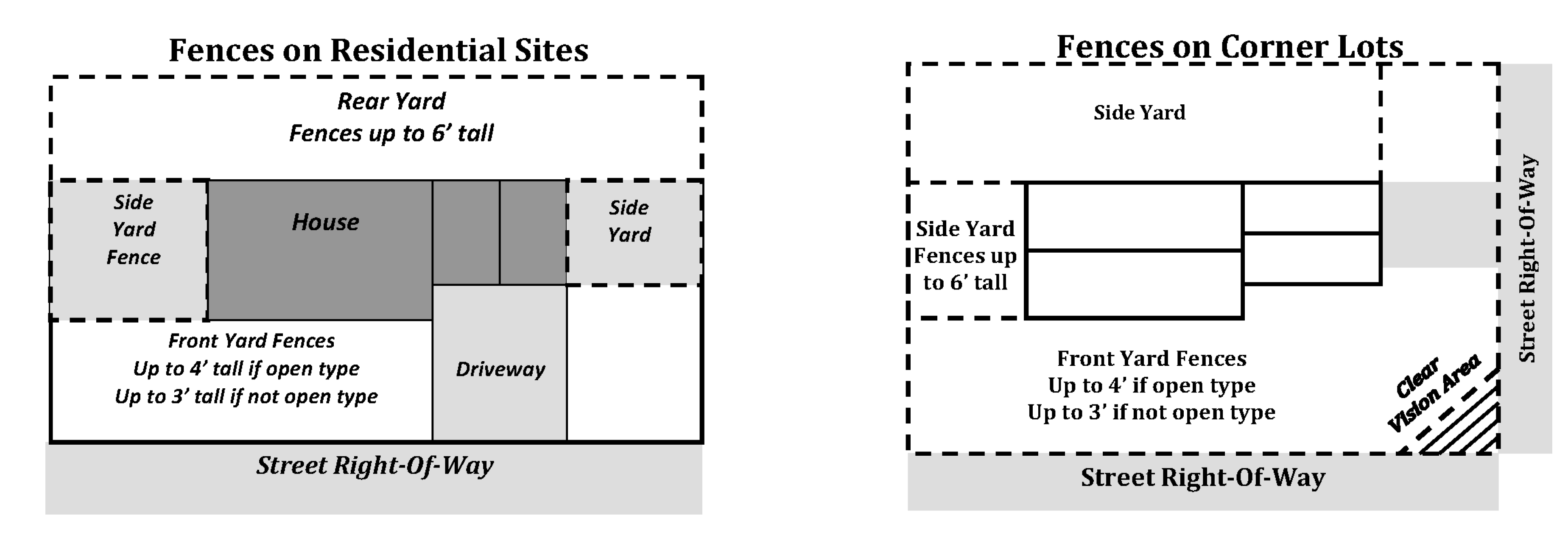 Fences in residential districts shall not exceed six feet in height in rear and side yards.
