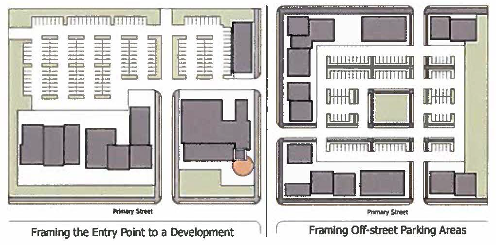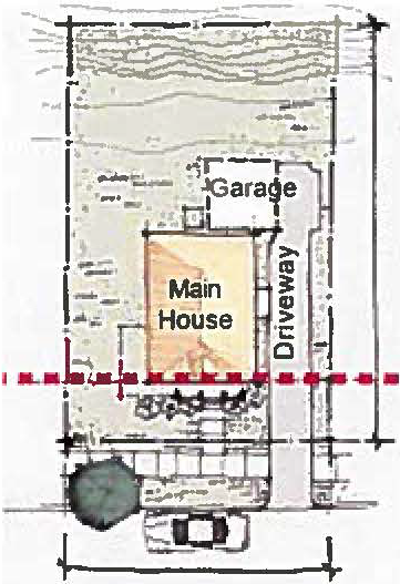 Garages: Shall be provided only along the rear of the main dwelling structure and shall be accessed via a shared alley (no front-facing garages).