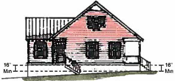 Foundation: Slab foundations shall be elevated a minimum of 16 inches above finished grade on all elevations and shall consist of brick/stone. Crawlspace foundations shall consist of brick/stone veneer at a minimum height of 16 inches above finished grade on all elevations (zoning administrator may make exceptions considered for accessibility requirements).