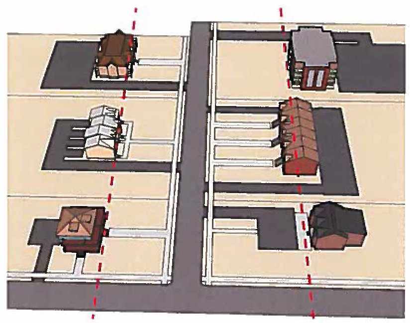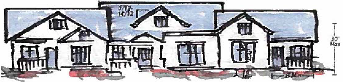 Roof Massing: All dwelling units shall have at least one gable or dormer facing the public street. Roof massing should be used to delineate each unit from one another.
