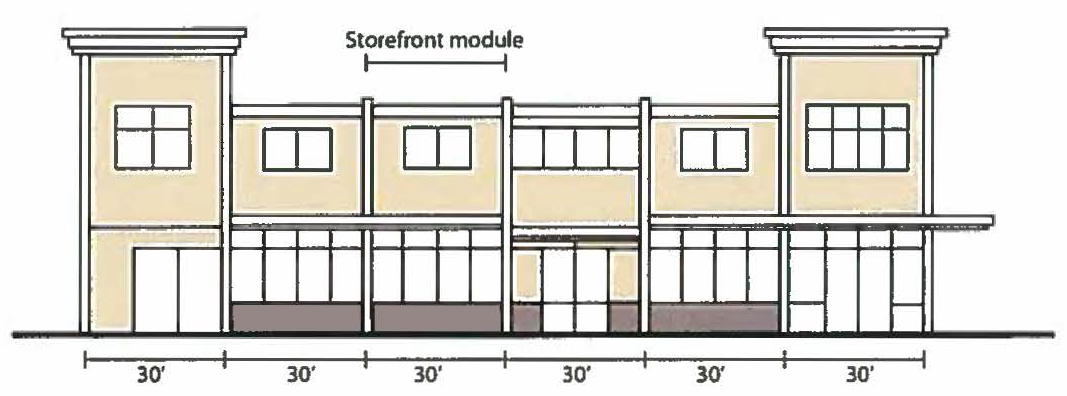 Fenestration (Doors and Windows): 25 percent minimum of the front facade shall be fenestrated and 10% minimum of each of the side and rear facades shall be fenestrated.