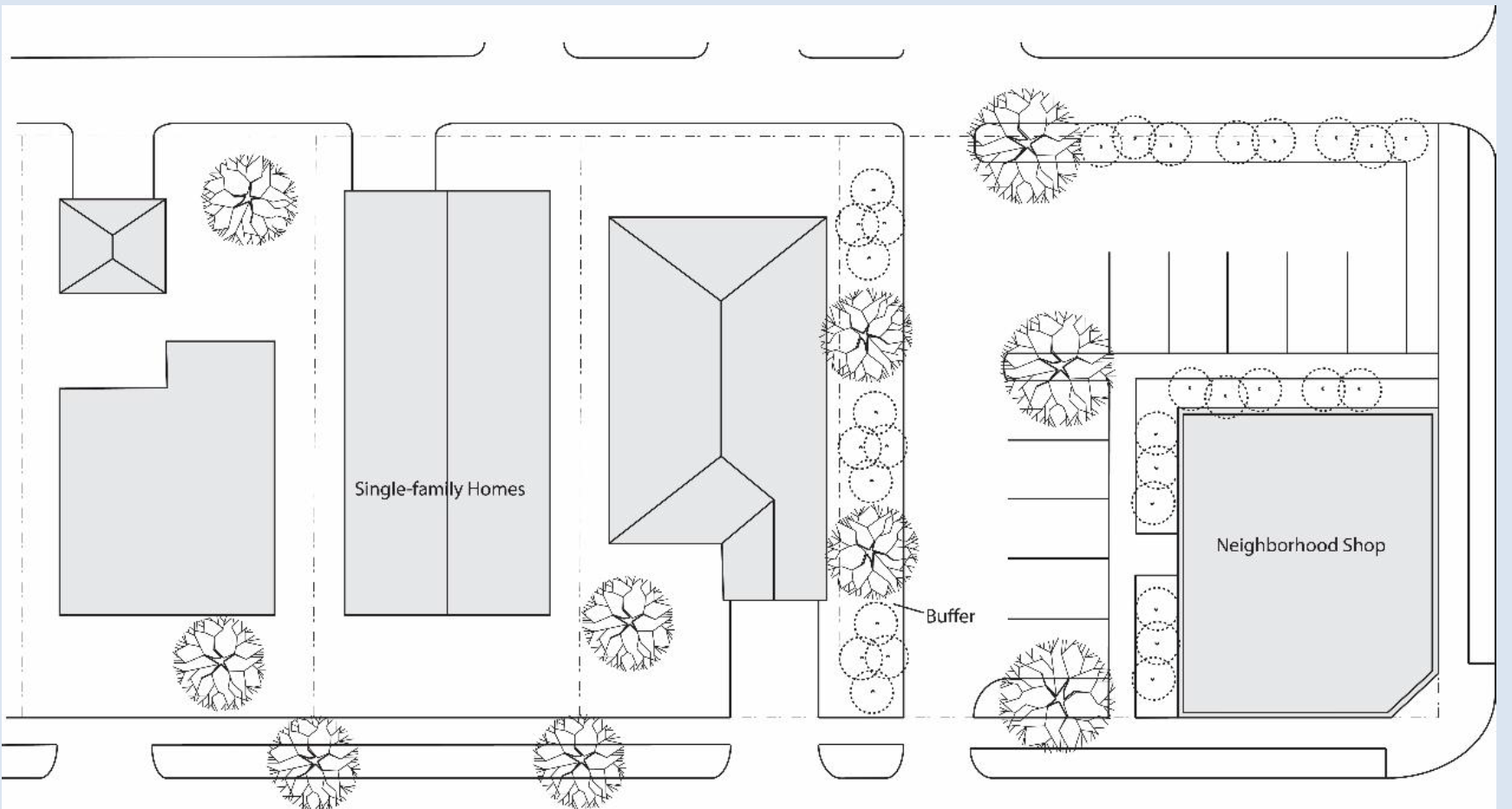 Buffers shall be unoccupied except for landscaping, utility facilities, sign or entrance ornamentation.