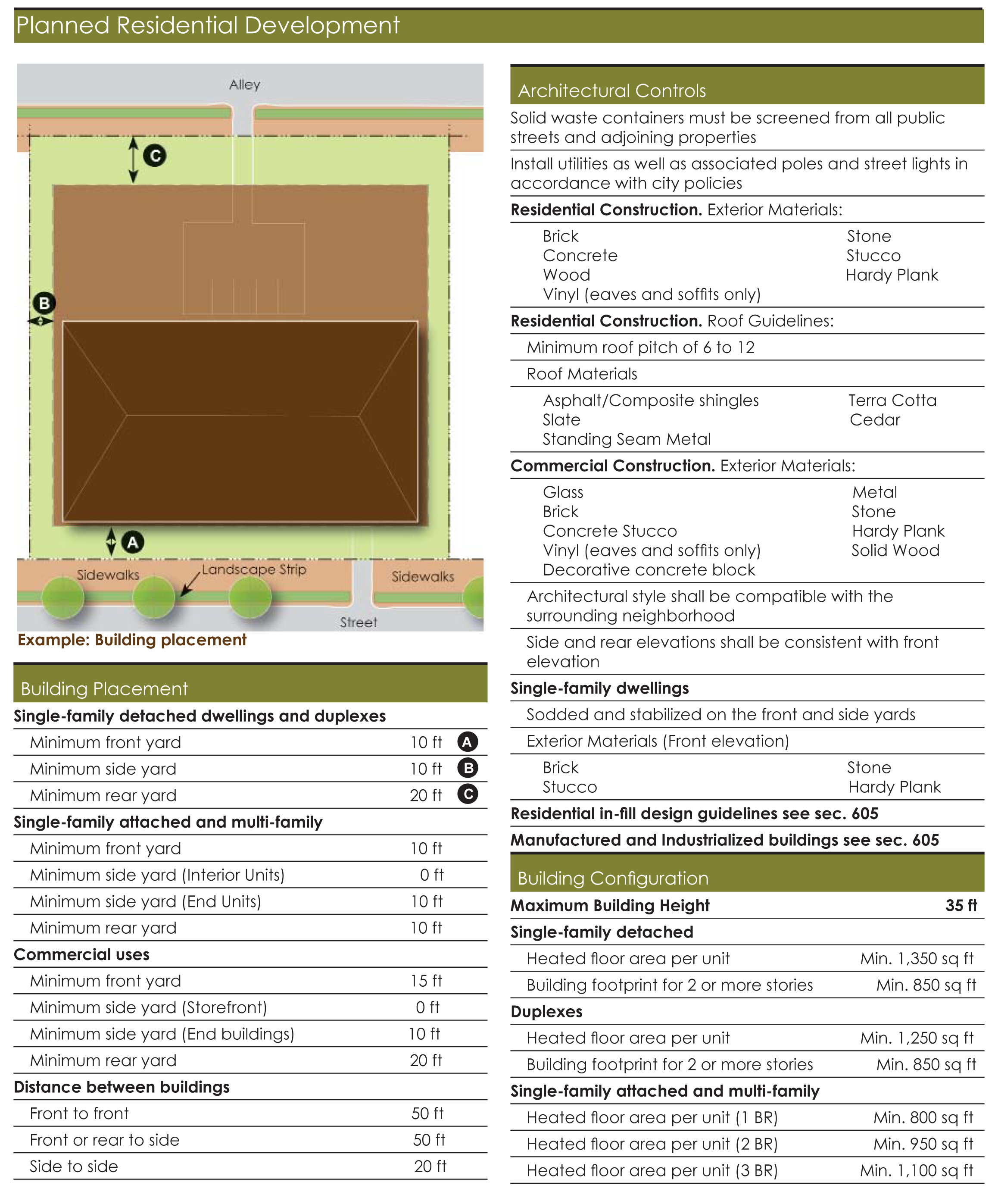 Roof pitch in residential developments shall be a minimum of 6/12. Roof materials shall consist of asphalt or composite shingles, terra cotta, slate, cedar or standing seam metal. "Rolled" asphalt roofing materials shall not be used.