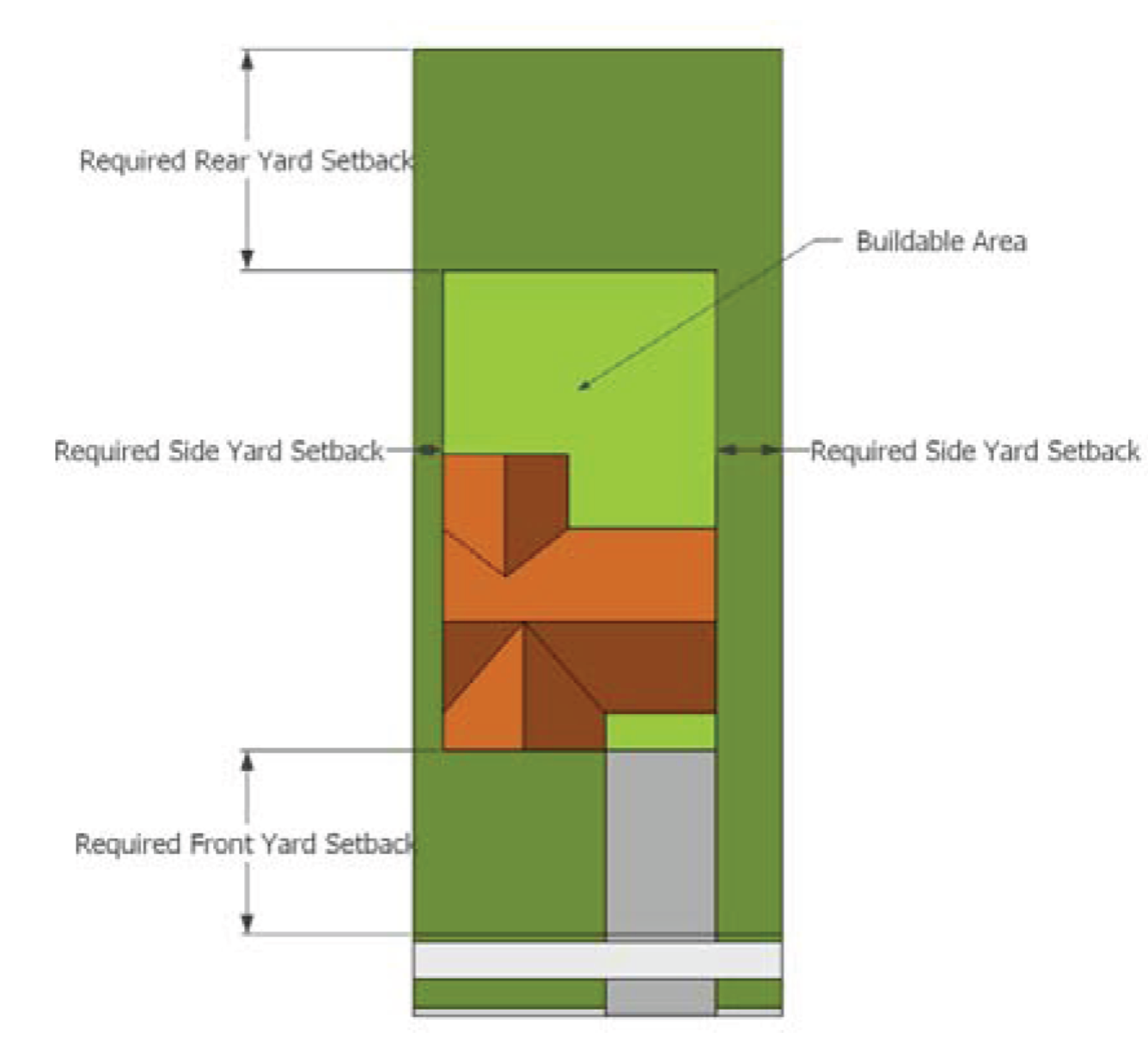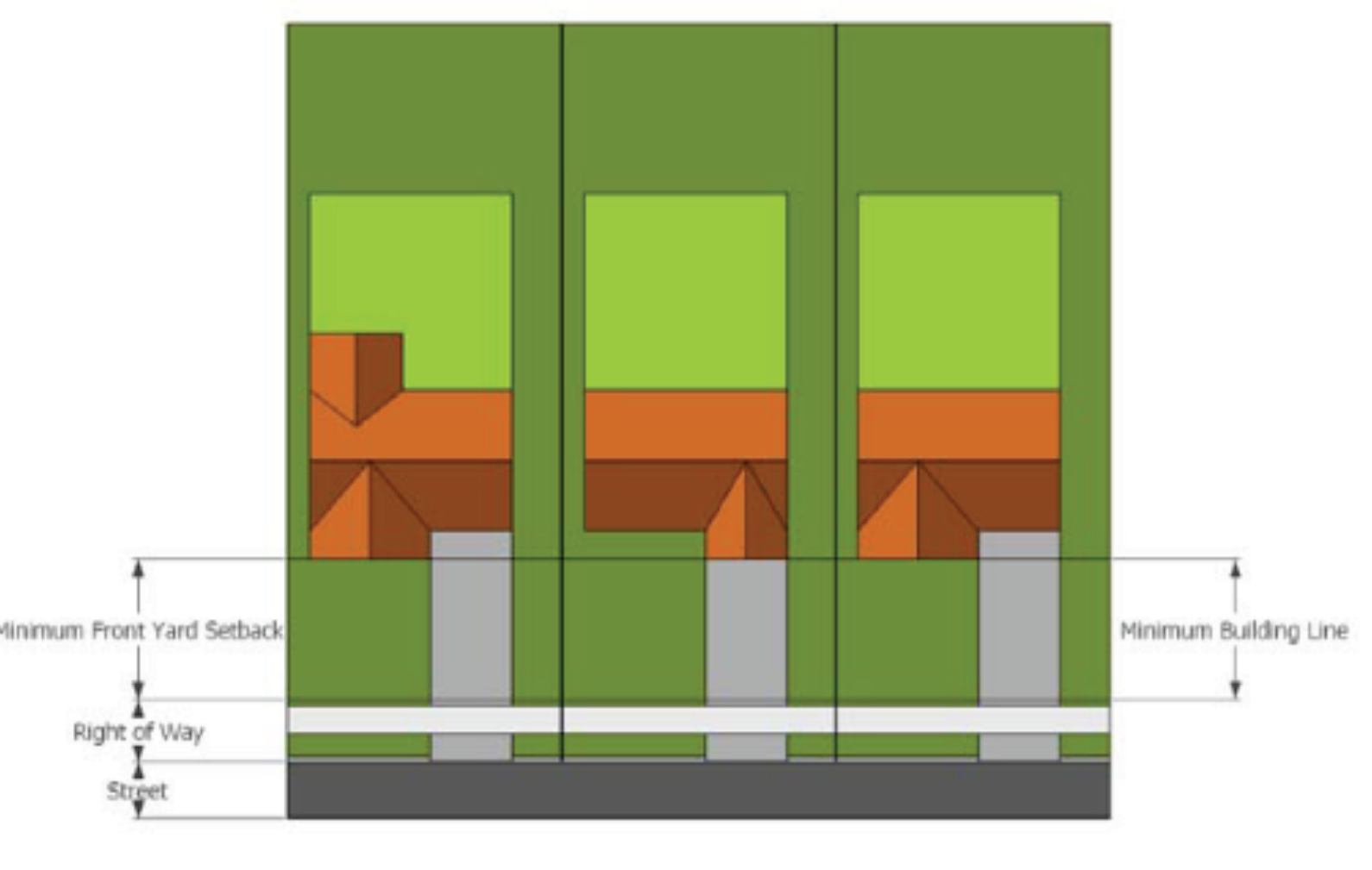 Setback. The minimum required horizontal distance between a building or structure and the front, side and rear lot lines. Setbacks are measured from the right-of-way to the building or the interior of the lot.