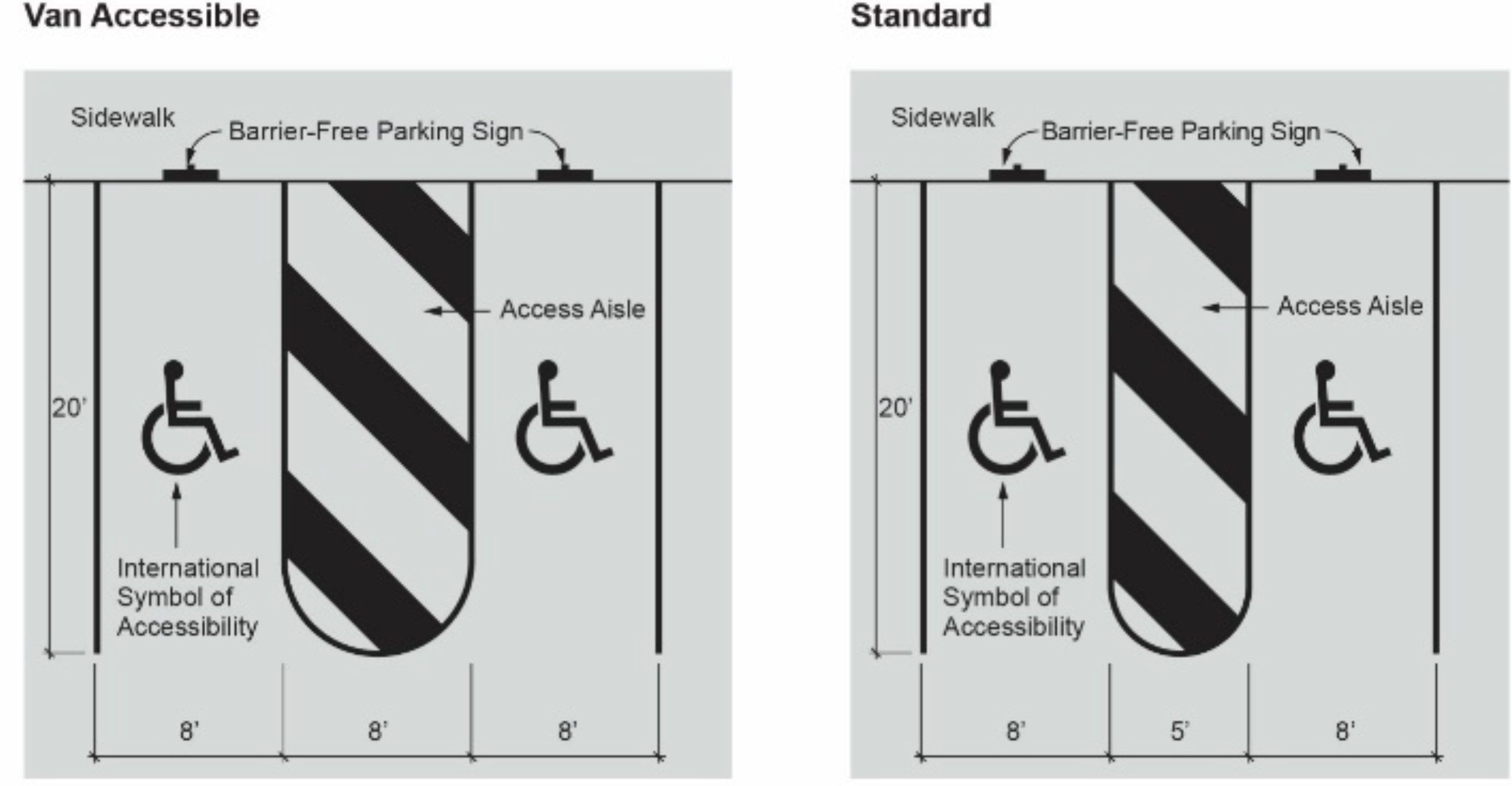 A minimum number of barrier-free spaces is required, as described in the table below: