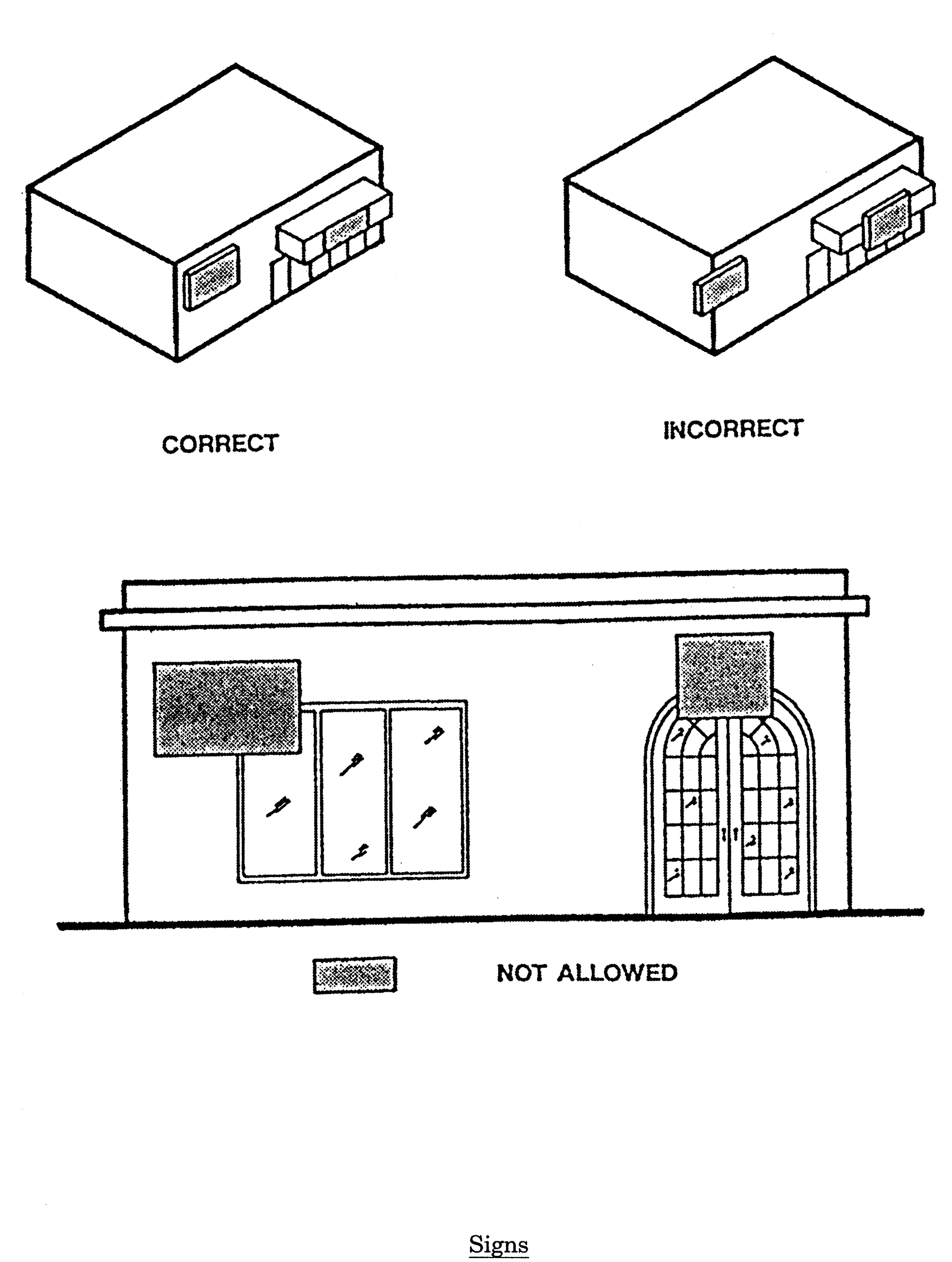 Relationship to building features. A building sign shall not extend beyond any edge of the surface to which it is attached, nor disrupt a significant architectural feature of the building. (See following figures)
