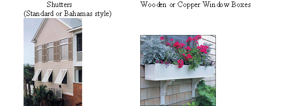 Balconies and porches: Balconies and porches shall be made of painted wood or decorative metal.