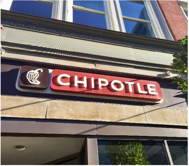 One awning sign, or one canopy sign, or one wall sign, or one projecting sign is allowed per establishment along the side of the establishment that includes its public entrance.