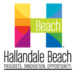 Logo and tagline. The city's trademarked logo shall consist of a stylized capital "H" with the word "Beach" occurring across the midsection of the "H" with the words "Hallandale Beach" below the stylized "H". The stylized "H" may be in full color or solid black with white lines. The city's tagline shall be "Progress. Innovation. Opportunity" and may be utilized under the stylized "H". The complete trademarked mark of the City of Hallandale Beach shall be as displayed in this section.