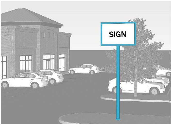 Drive-through sign. A ground sign located on a non-residential lot adjacent to a driveway leading to a drive-through window in any building located on the lot and situated such that any message contained thereon is visible to pedestrians or motorists on the lot but is not readable from any public right-of-way.